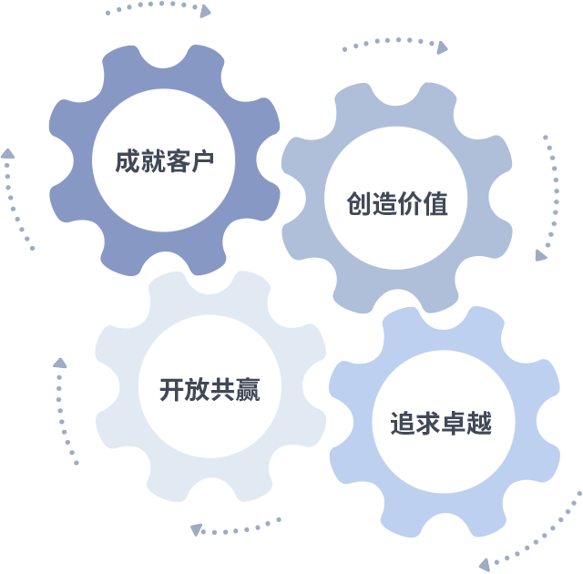 成就客户是一切决策的出发点,创造价值是衡量所有工作的标准,追求卓越是天博体育做事做人的态度,开放共赢是天博体育的格局也是最终的结果。价值观的齿轮环环相扣,推动着组织里的每个人不断向前。